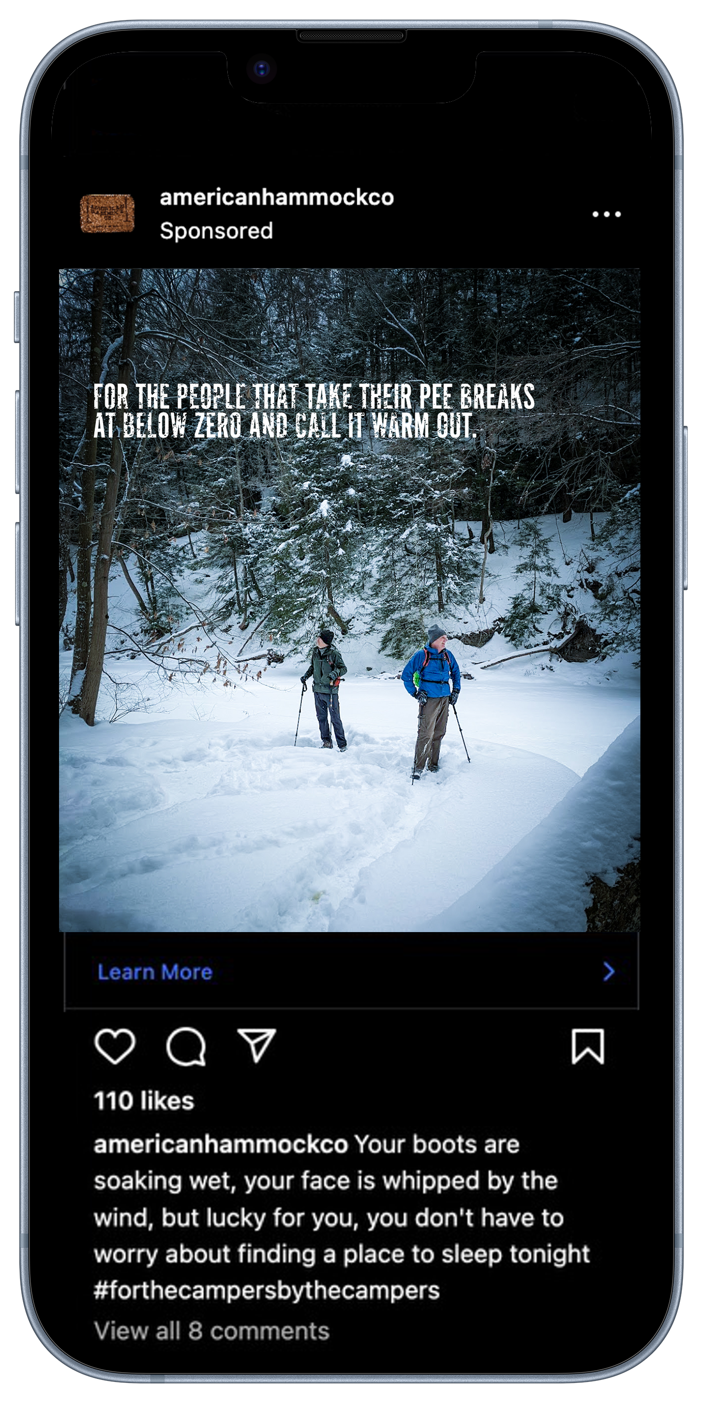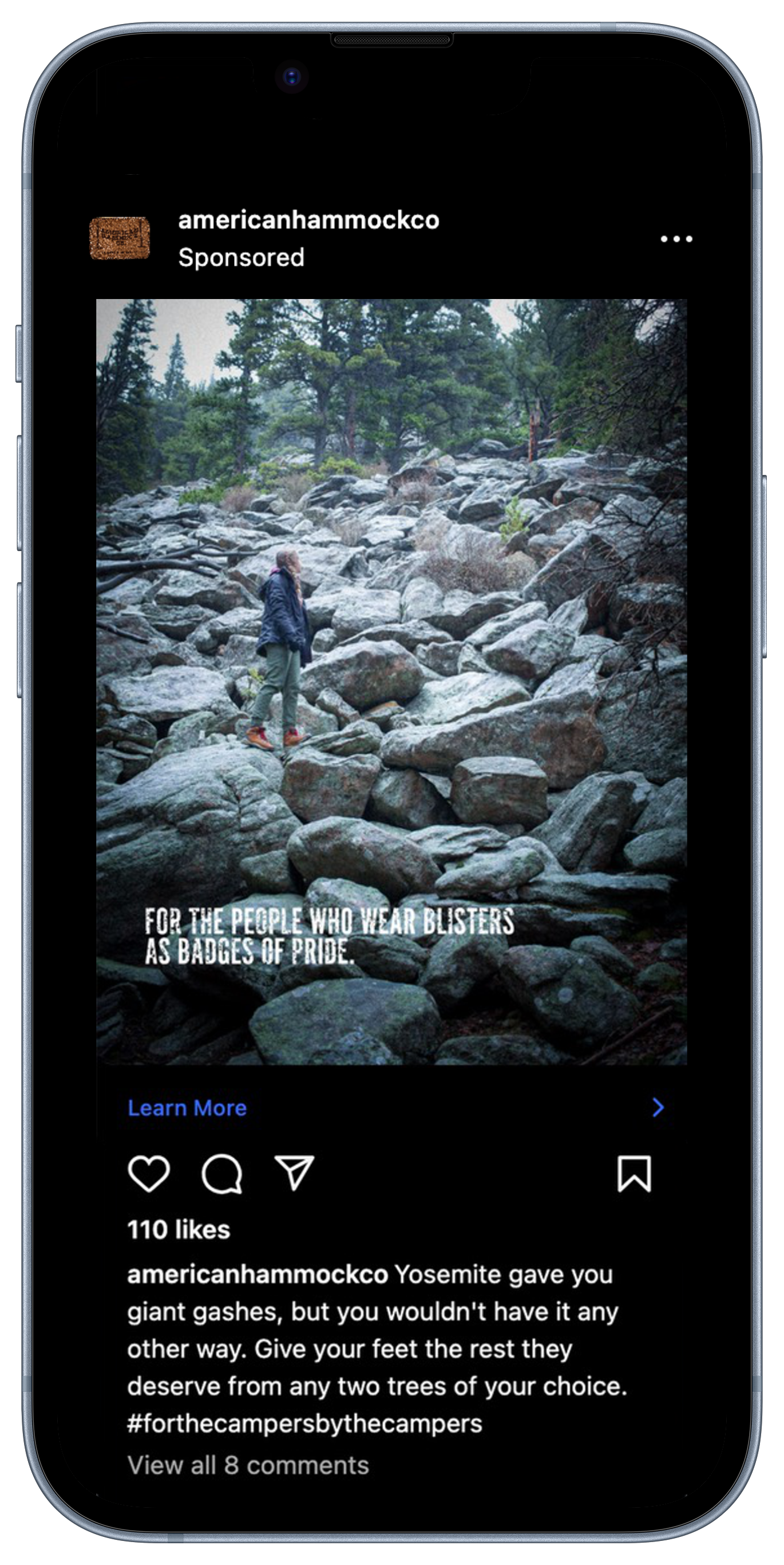 Even though our target would rather be out in nature, instead of scrolling through pictures of it, we know they’re checking social media to find inspiration for their next hike. So, while they’re feeding their wanderlust on Instagram, we’ll let them know American Hammock Co. is a necessity for their next exploration.