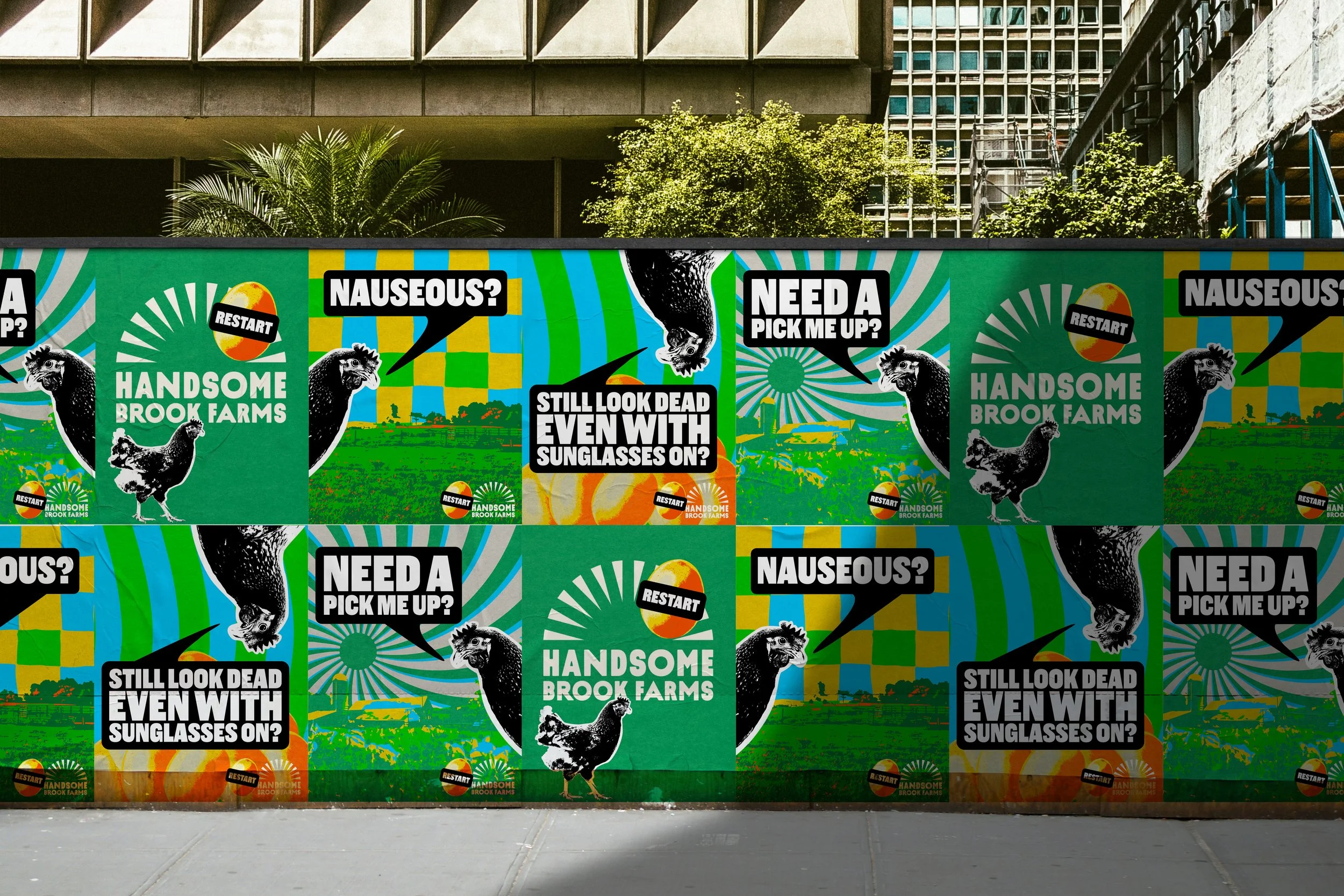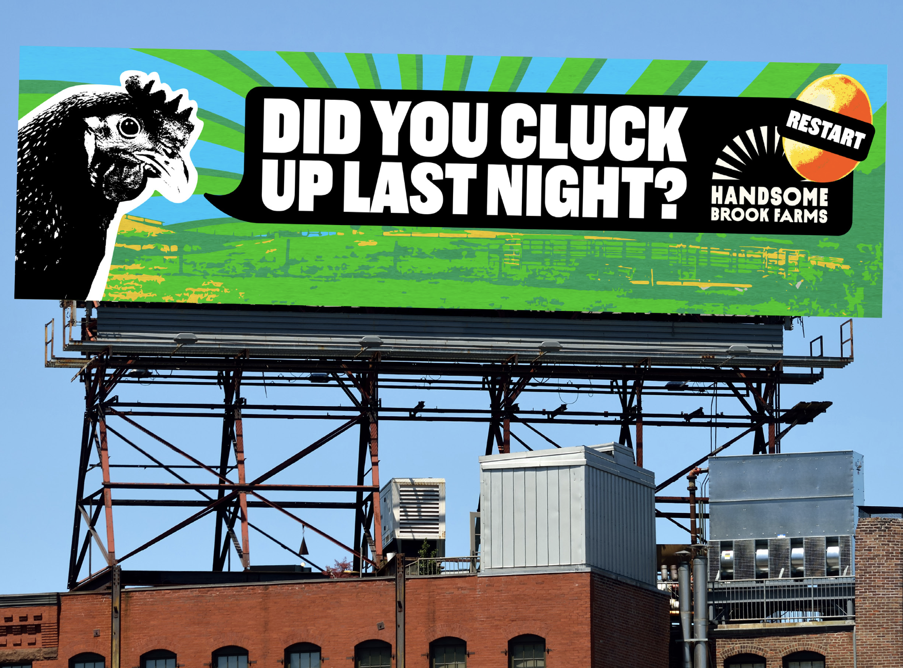 A billboard placed in college towns reminds undergrads: no matter what happened last night, Handsome Brook Farms offers a restart.